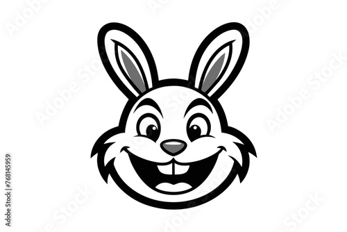 Rabbit with a big smile, for a logo. Simple black and white drawing style, with few drawing lines hgh