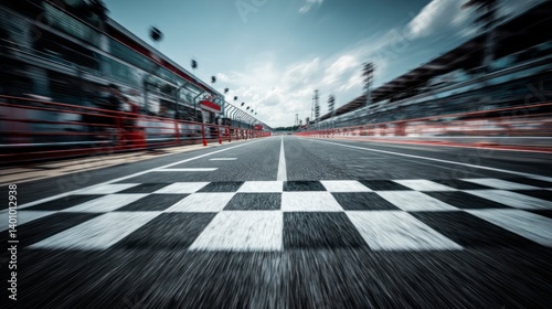Racing to the Finish Line on Blurred Race Track with Grandstands