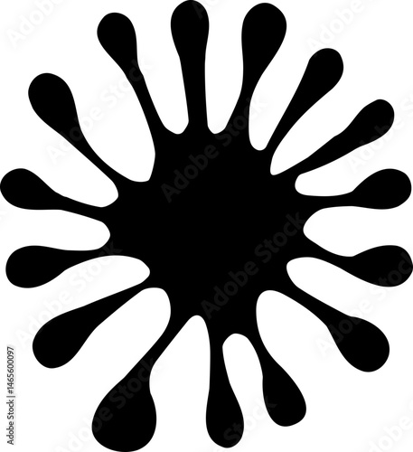 Radial star-like ink splatter with sharp lines emanating from a central point.