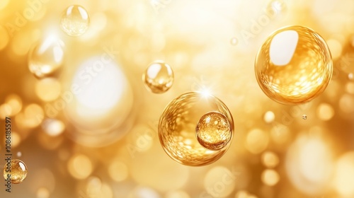 Radiant bubbles of collagen essence resting on a calming pastel canvas, exuding skincare luxury.
