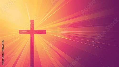 Radiant cross with light rays against a soft pastel background, symbolizing faith, hope, and spiritual illumination, ideal for religious and inspirational themes.