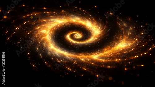 Radiant gold spiral shimmering softly with scattered glitter effects on a black background