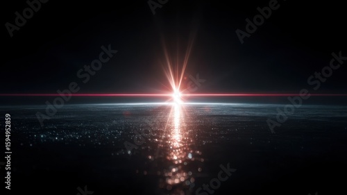 Radiant Horizon Light Beam Over Calm Ocean Surface