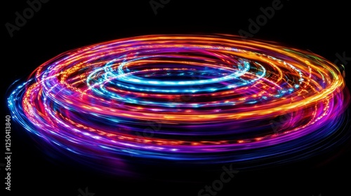 Radiant neon light trails forming a vortex, symbolizing a hyperjump into deep space.