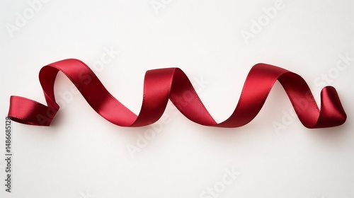 Radiant red gift ribbon coiled into refined artistic shape placed neatly on white