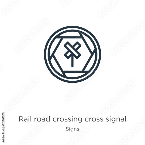 Rail road crossing cross signal icon. Thin linear rail road crossing cross signal outline icon isolated on white background from signs collection. Line vector sign, symbol for web and mobile