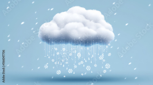 Rain cloud with wet snow weather meteo icon vector illustration. Realistic falling water drops and snowflakes, element for weather forecast, wet rainy day pictogram, isolated on transparent background