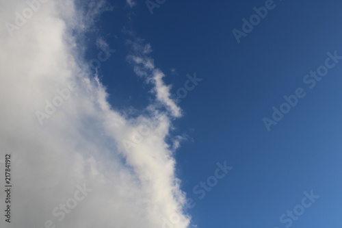 Rain clouds clash with deep blue sky