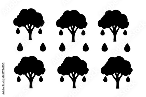 Rain Falling on Trees in Minimalist Style Vector Illustration