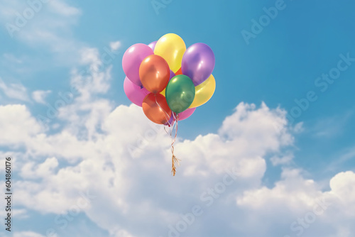 Rainbow balloon on sky background. concept of lgbti. copy space made with Generative AI