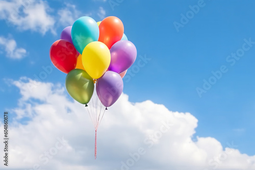 Rainbow balloon on sky background. concept of lgbti. copy space made with Generative AI