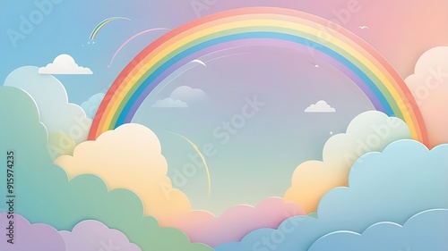 Rainbow clouds sky moon stars sea hills depicts a vibrant and magical landscape suitable for fantasy book covers or posters.