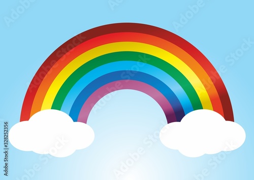 Rainbow, Color Rainbow With Clouds, With Gradient Mesh, Vector Illustration