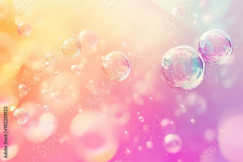 Rainbow gradient bubbles floating on a vibrant abstract background with light reflections and bokeh effect - Generative ai. Beautiful simple AI generated image