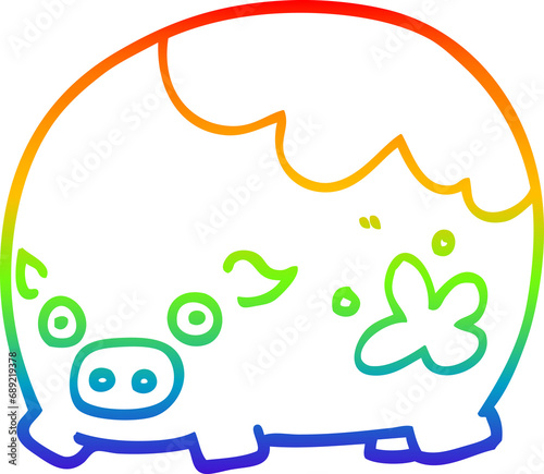 rainbow gradient line drawing of a cartoon dirty pig