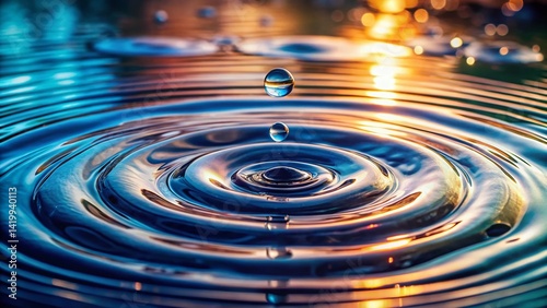 Raindrops Falling on Still Water, Creating Concentric Ripples, High Depth of Field