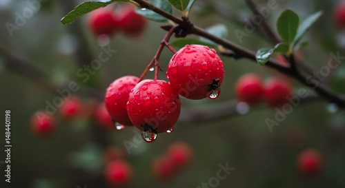 Rain-Kissed Red Berries: A Serene Autumnal Close-Up