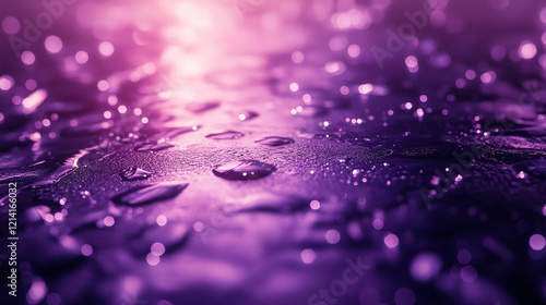 Rainy droplets create a reflective surface with purple hues during evening hours