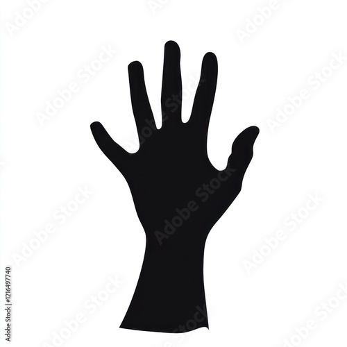 Raised hand silhouette, studio shot, white background, graphic design element.