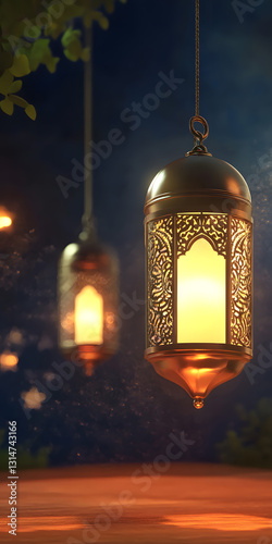 Ramadan and Eid al fitr concept backgrounds dates with traditional lantern Light Lamp and Tasbeeh, Ramadan Kareem Mubarak background