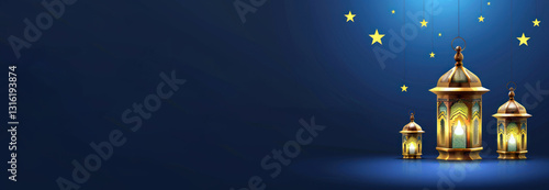 Ramadan Kareem: Lanterns & Crescent Moon.
