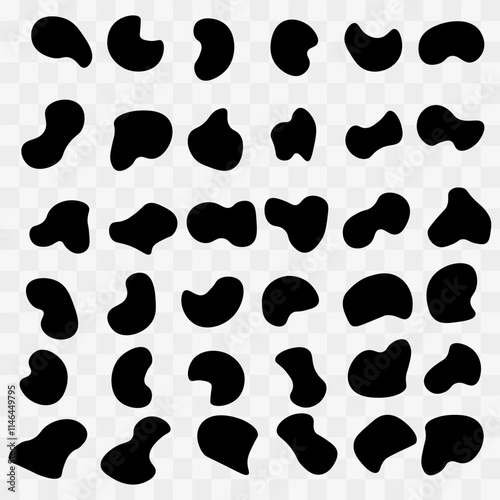 Random blob circles silhouette icon set. An arrangement of black organic shapes. Isolated on a white background. Pebble, drops and stone silhouettes. eps10 55