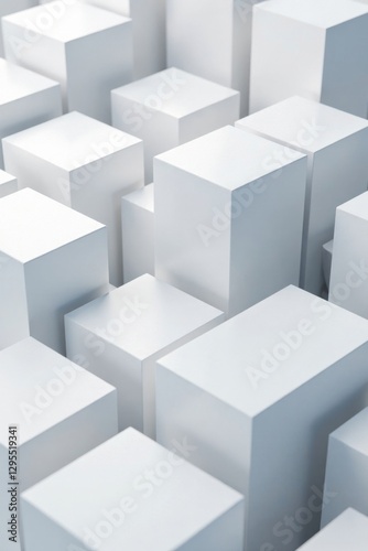 Random shifted white cube boxes , abstract pattern, minimalist style, design element