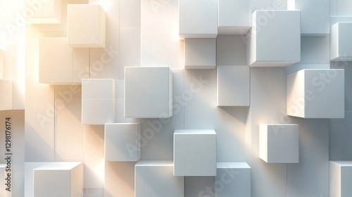 Randomly arranged white cube boxes fading out on a modern background symbolizing abstraction transition emptiness and minimalism with copy space for creative design.
