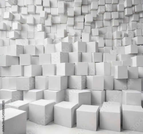 Randomly arranged white cube boxes on a plain background with ample copy space, cube boxes, geometric shapes, minimalist style