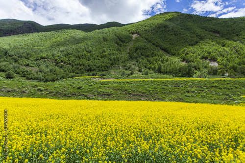 Rapeseed field and mountain