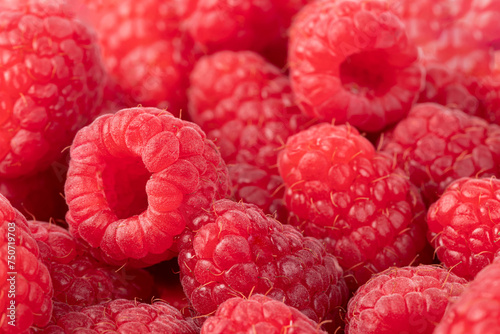 Raspberries. Fresh juicy raspberries bright background. Close-up.