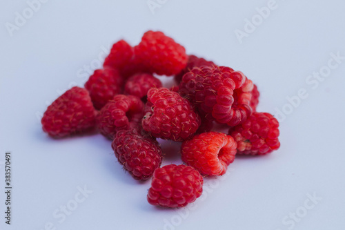 raspberries on a white background