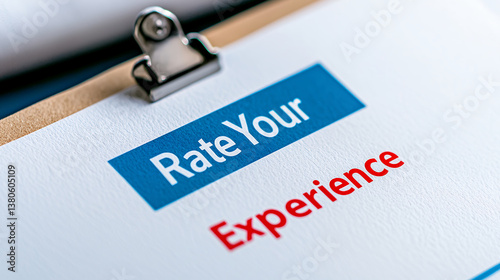 Rate your experience feedback form on clipboard, emphasizing customer satisfaction and engagement