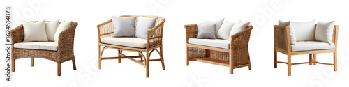 Rattan Furniture Set: Stylish Outdoor Seating Isolated on White