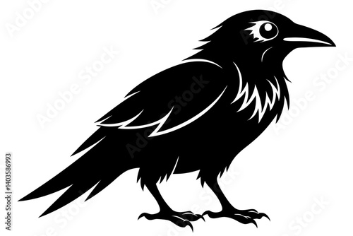 raven silhouette line art vector illustration with a white background