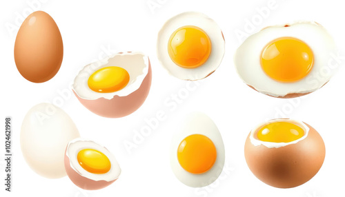 Raw and Boiled Eggs Isolated on White Background