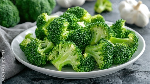 Raw broccoli placed on a white plate ready to serve