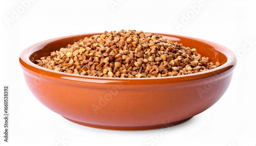 Raw Buckwheat in Ceramic Bowl Isolated on White Background with Clipping Path, Healthy Food