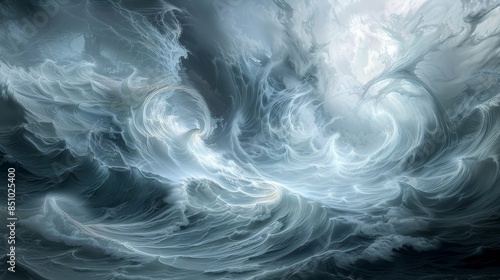 Raw energy of a stormy sea with swirling clouds and crashing waves