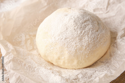 Raw puff pastry on table, close up