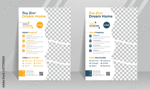 Real estate a4 flyer template. Perfect for creative and professional real estate business. Modern template in 2 color variation.