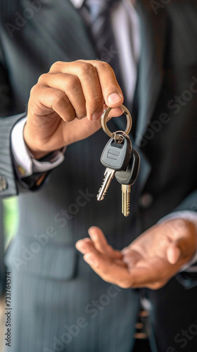 Real estate agent handing over the keys to the customer. Real estate concept .