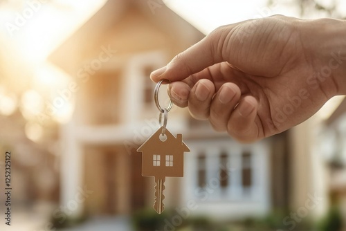 real estate agent holding keys in front of a home