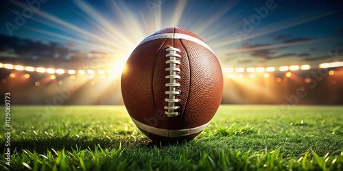 Realistic 3D American Football Ball on a Grass Field with Dynamic Lighting and Textures for Sports Photography
