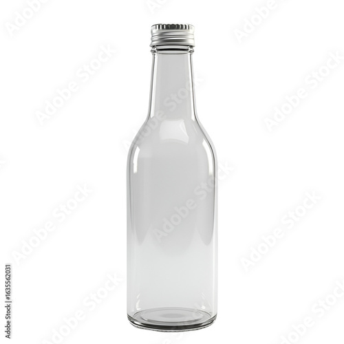 Realistic 3D Isolated Glass Bottle With Silver Cap And Transparent Background