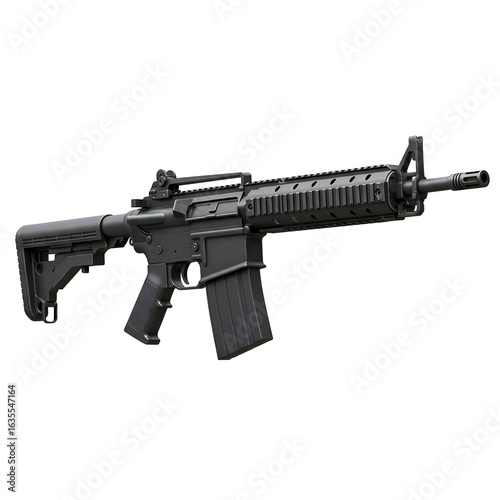Realistic 3D Render Of A Black Military Assault Rifle Isolated On White Background