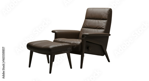 Realistic 3D Render of a Brown Leather Chair and Ottoman with Transparent Background