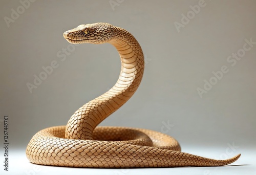 "Realistic 3D Render of a Coiled Cobra Snake with Detailed Scales and Neutral Background"