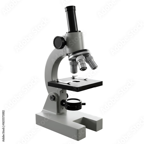 Realistic 3D Render of a Grey Microscope on Transparent Background