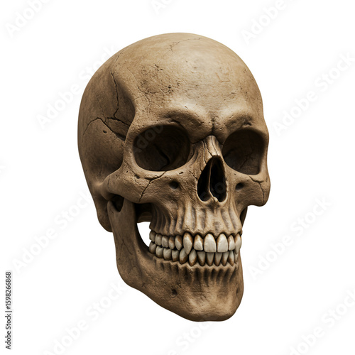 Realistic 3D Render of A Human Skull Isolated on Black Background